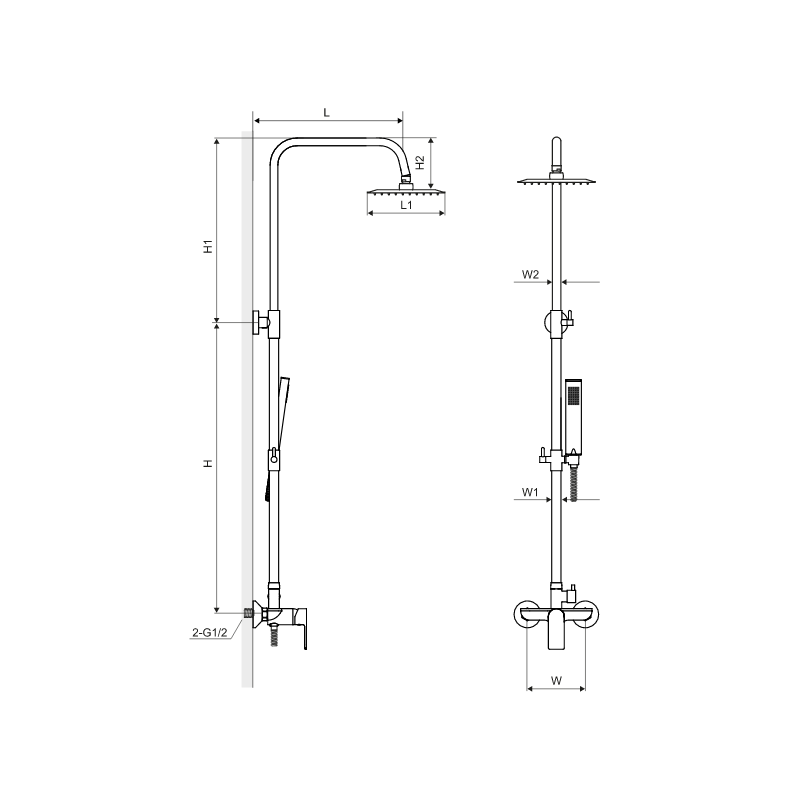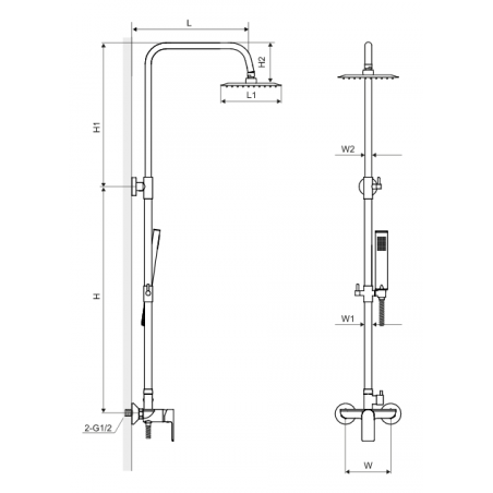 Zestaw wykonany z mosiądzu, posiada głowicę oraz mechaniczny przełącznik funkcji głowica-słuchawka. Regulowany wysięg drążka pozwala na swobodne dostosowanie do osób o różnym wzroście.