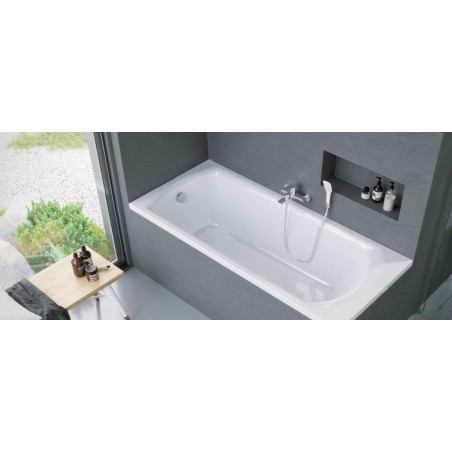 Dzięki temu bateria może być instalowana do każdej prawidłowo wykonanej instalacji pod baterię prysznicową. Posiada dolne przyłącze węża prysznicowego oraz uchwyt mieszacza skierowany w dół. Wykonana z chromowanego mosiądzu. Jej idealnym uzupełnieniem będą zestawy prysznicowe z drążkiem.