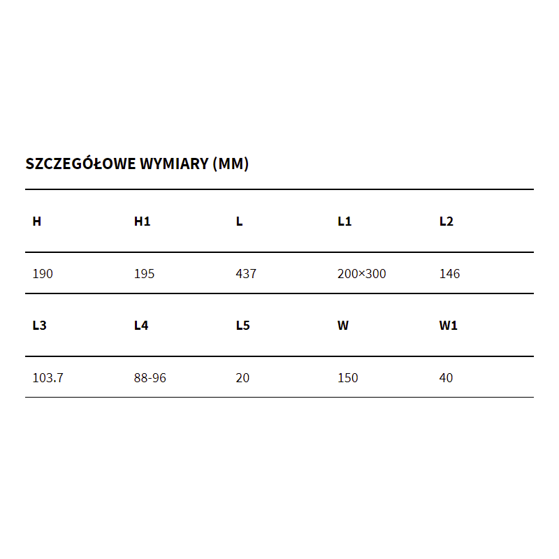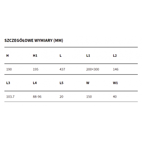 Długość wylewki (mm): 437