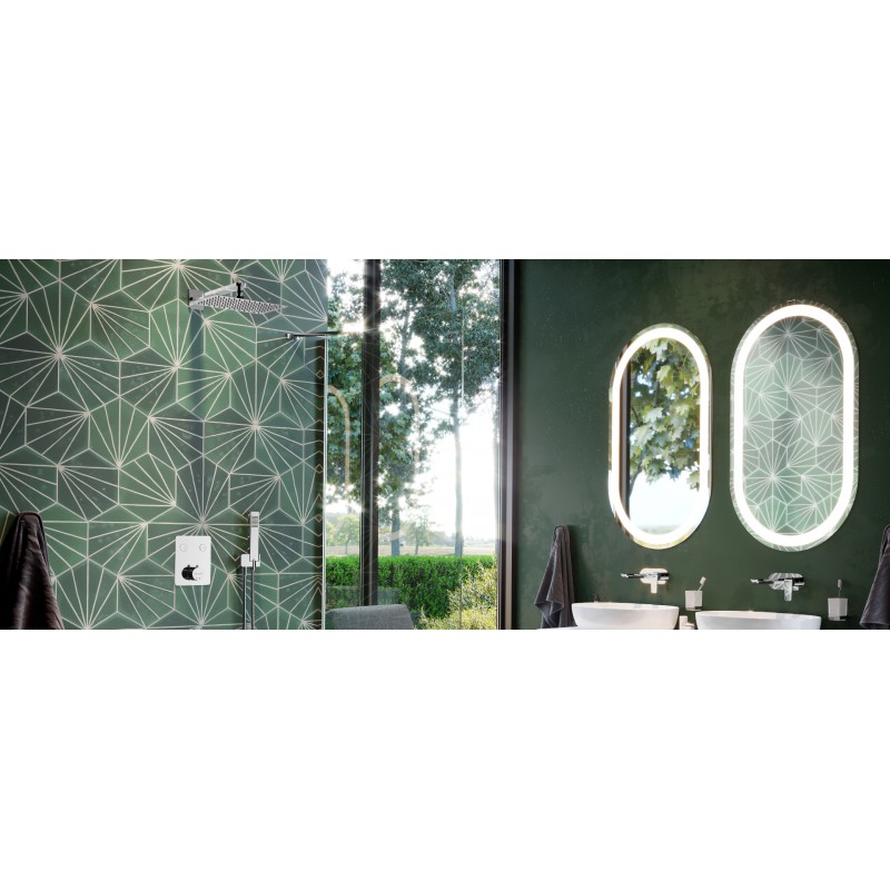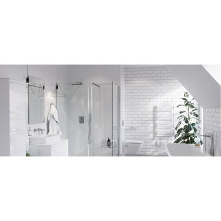 Uchwyty baterii są odpowiednio karbowane by ułatwić regulację w obrocie. Zestaw podtynkowy prysznicowo-wannowy Krotos z 2 funkcjami składa się z baterii prysznicowo-wannowej Krotos, deszczowni górnej oraz zestawu prysznicowego punktowego. Bateria prysznicowo-wannowa podtynkowa termostatyczna 2-funkcyjna serii Krotos posiada Fix-Box, który ułatwia instalację baterii oraz zapewnia stały dostęp rewizyjny do mechanizmu baterii. Mechaniczny przełącznik funkcji pozwala na wygodny wybór wypływu wody – system Easy-Click pozwala na regulację jednocześnie źródła wody (włącz-wyłącz). Temperaturę można regulować na pokrętle poniżej. Deszczownica górna może być instalowana na wybranej wysokości.