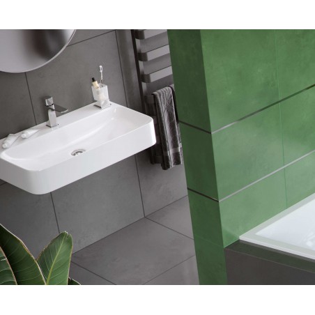 Bateria umywalkowa niska posiada wylewkę o zasięgu 125mm i wysokości 108mm. Dzięki temu z powodzeniem może być stosowana do większości umywalek. Korpus umywalki wykonany jest z jednego odlewu. Posiada wbudowane: głowicę Kerox oraz perlator Neoperl Slim. Jej idealnym uzupełnieniem będą korki umywalkowo-bidetowe w kolorze chrom lub białym (dopasowanym do koloru ceramiki).