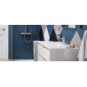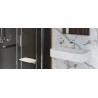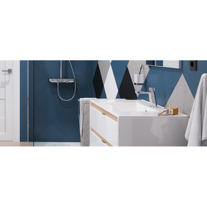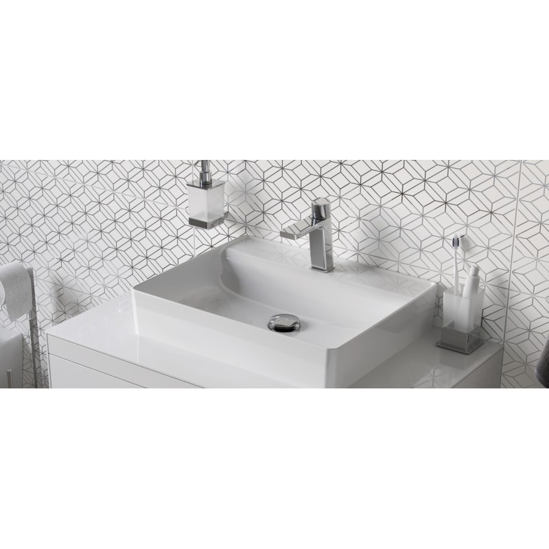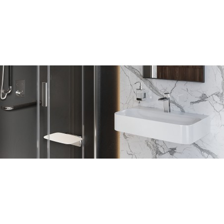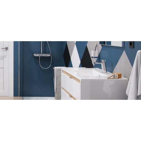 Uchwyty baterii są odpowiednio karbowane by ułatwić regulację w obrocie. Bateria umywalkowa niska posiada wylewkę o zasięgu 120mm i wysokości 106mm. Dzięki temu z powodzeniem może być stosowana do większości umywalek. Korpus umywalki wykonany jest z jednego odlewu. Posiada wbudowane: głowicę ceramiczną z systemem Easy-Click pozwalającą na regulację temperatury wody oraz perlator Neoperl Slim. Jej idealnym uzupełnieniem będą korki umywalkowo-bidetowe w kolorze chrom lub białym (dopasowanym do koloru ceramiki).