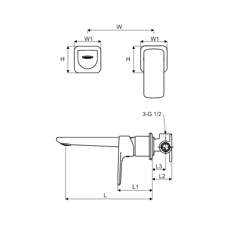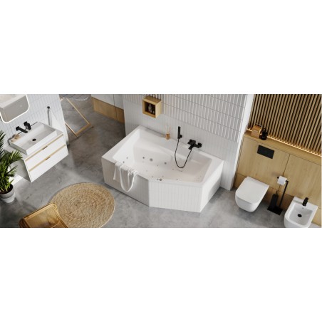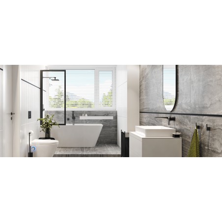 Bateria umywalkowa podtynkowa posiada wylewkę o zasięgu 196mm, może być instalowana na wymaganej wysokości nad umywalką. Dzięki temu z powodzeniem może być stosowana do umywalek nablatowych bez otworu na baterię. Posiada wbudowane: głowicę Kerox oraz perlator Neoperl Slim. Posiada rozdzielne delikatne rozety o wymiarach 60×60. Jej idealnym uzupełnieniem będą korki umywalkowo-bidetowe w kolorze czarnym lub białym (dopasowanym do koloru ceramiki). Dostępna także w kolorze chrom.