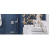 Bateria umywalkowa wysoka posiada wylewkę o zasięgu 189mm i wysokości 246mm. Dzięki temu z powodzeniem może być stosowana do umywalek nablatowych bez otworu na baterię. Korpus umywalki wykonany jest z jednego odlewu. Posiada wbudowane: głowicę Kerox oraz perlator Neoperl Slim. Jej idealnym uzupełnieniem będą korki umywalkowo-bidetowe w kolorze chrom lub białym (dopasowanym do koloru ceramiki).