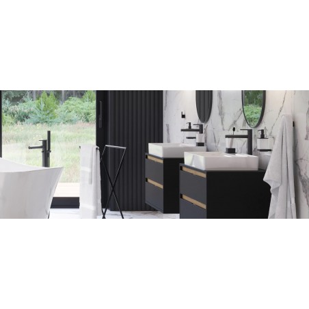 Bateria umywalkowa wysoka posiada wylewkę o zasięgu 189 mm i wysokości 246 mm. Dzięki temu z powodzeniem może być stosowana do umywalek nablatowych bez otworu na baterię. Korpus baterii wykonany jest z jednego odlewu. Posiada wbudowane: głowicę Kerox oraz perlator Neoperl Slim. Jej idealnym uzupełnieniem będą korki umywalkowo-bidetowe.