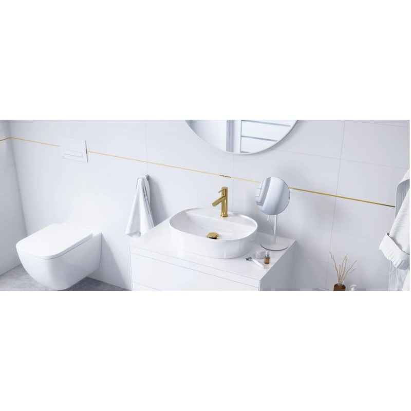 Bateria umywalkowa niska posiada wylewkę o zasięgu 116mm i wysokości 108mm. Dzięki temu z powodzeniem może być stosowana do większości umywalek. Korpus umywalki wykonany jest z jednego odlewu. Posiada wbudowane: głowicę Kerox oraz perlator Neoperl Slim. Jej idealnym uzupełnieniem będą korki umywalkowo-bidetowe.