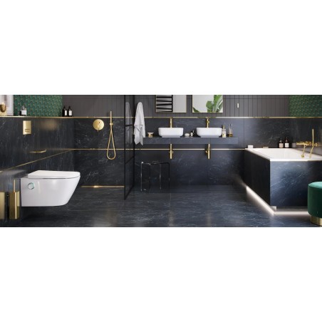 Toaleta myjąca Excellent jest misą beztrantową i posiada system spłukiwania CLEAN-ME. Ponadto wyposażona jest w wypinaną deskę z mechanizmem wolnego opadania. To czyni ją bezpiecznym rozwiązaniem dla rodzin z dziećmi czy osobami starszymi. Dlaczego? Ponieważ nie zmusza użytkownika do uważnego opuszczania deski. Wystarczy ją delikatnie pchnąć, by pokrywa samodzielnie opadła na rant toalety.