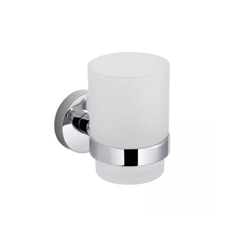 kubek szklany matowy stabilnie osadzony w uchwycie za pomocą uszczelki z elastycznego tworzywa,