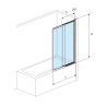 Przesuwna konstrukcja parawanu daje możliwość dopasowania jego długości do indywidualnych potrzeb - całkowity zakres długości mieści się między 630 a 1100mm. Do zestawu dołączono ściągaczkę ułatwiającą czyszczenie trudno dostępnych fragmentów między dwoma szybami. Parawan został wykonany z przezroczystego szkła hartowanego o grubości 6mm.