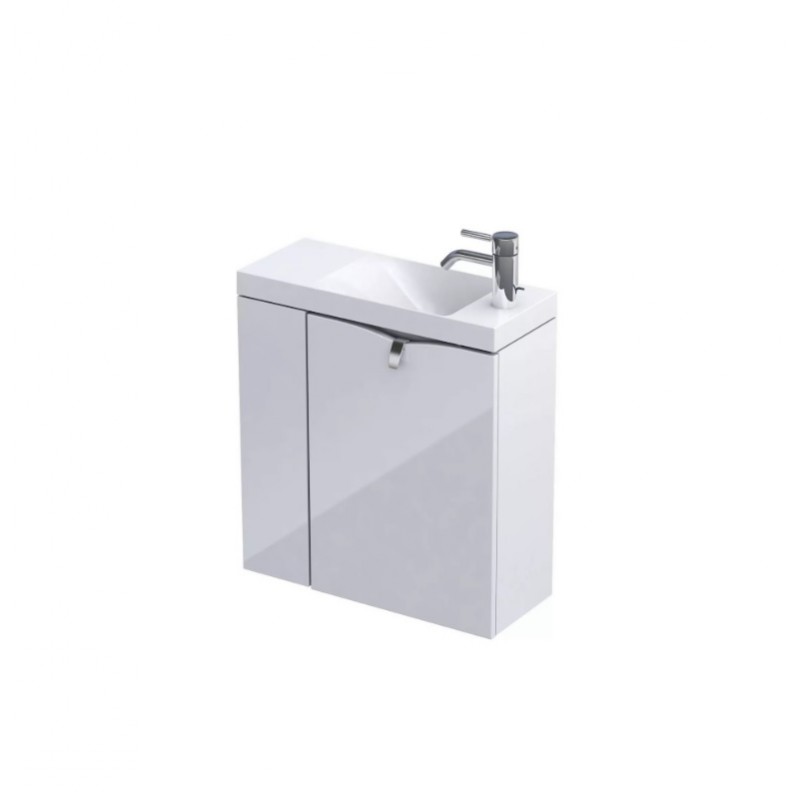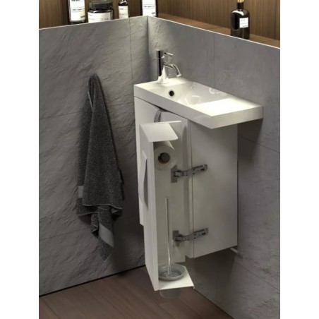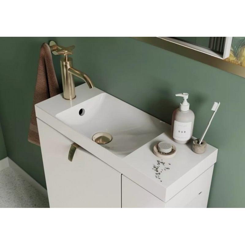 Zestaw szafka-umywalka SIENA MINI 55 lewa – idealne rozwiązanie do toalety lub małej łazienki + gratis szczotka do WC i uchwyt na papier toaletowy w zabudowie szafki.