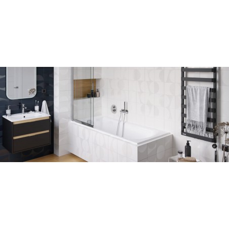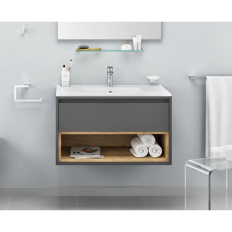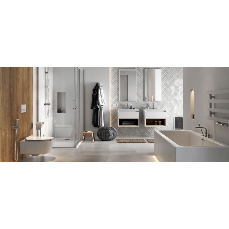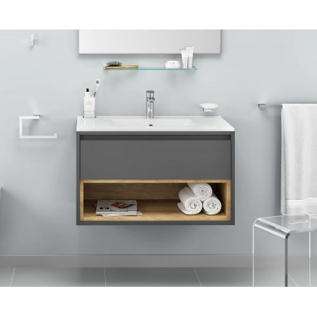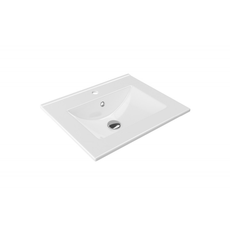 Ceramiczna umywalka meblowa AS o szerokości 60 cm, dopasowanej do rozmiaru szafki (idealnie dopasowana do szafek TUTO z oferty Excellent). Umywalka ma przelew i otwór na armaturę. Po bokach znajduje się płaska przestrzeń na odkładanie przedmiotów. Zestaw nie zawiera baterii umywalkowej, syfonu ani korka.